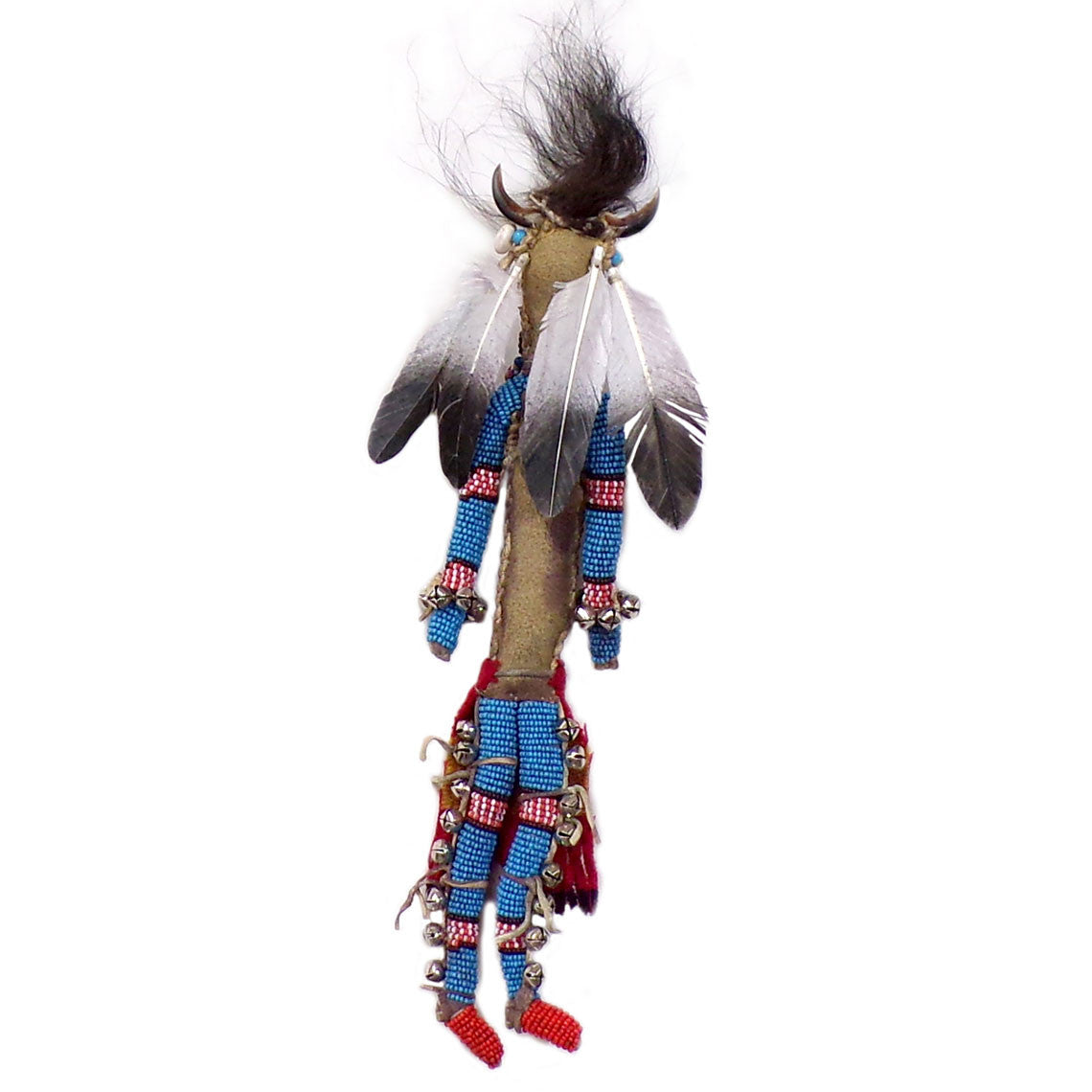 Hand beaded by local Lakota artist Sophie Little Wounded, she creates the image of a Spirit Warrior. This style of effigy would bring messages of strength and support.