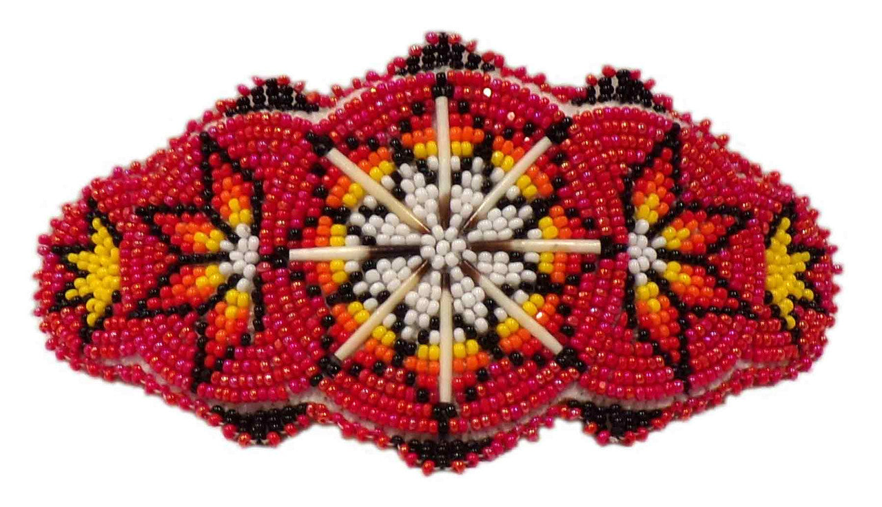 Native American Hand Beaded Hair Barrette: Vibrant Red