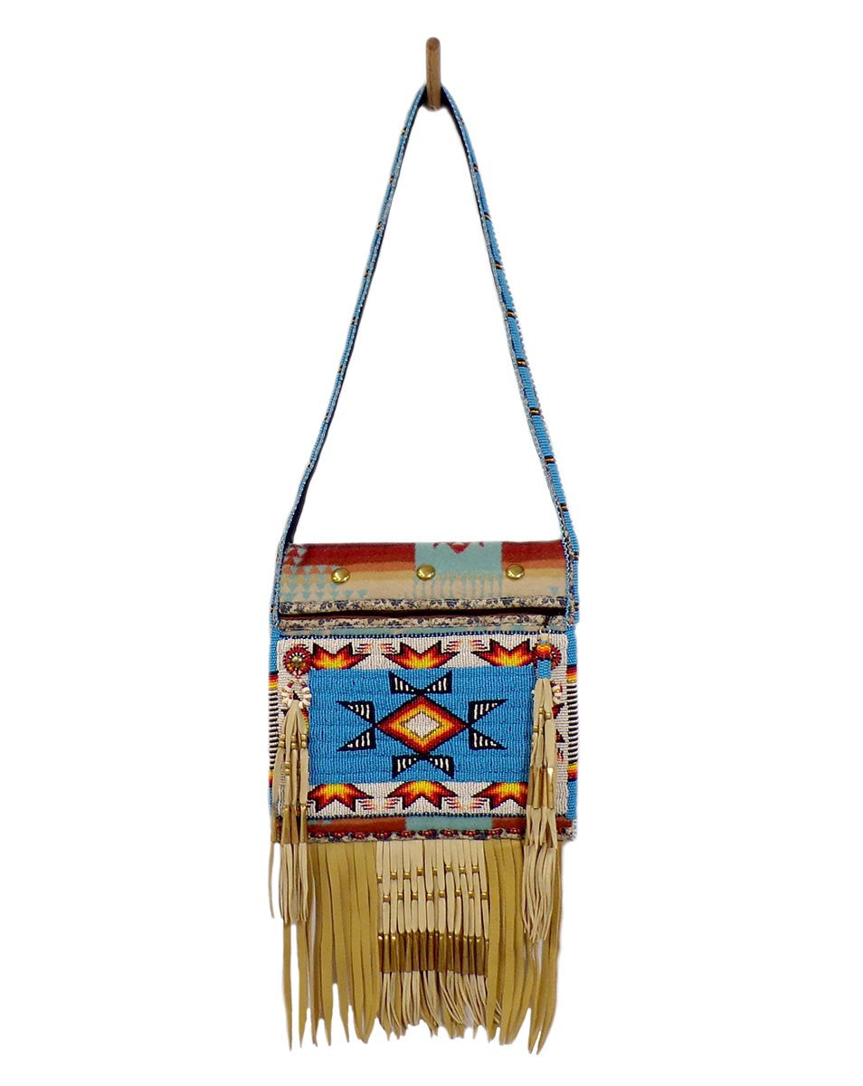 Native American Hand Beaded Purse: Morning Star Design (Turq/Pearl)