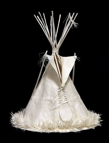 'Lakota Lodge' by Allen Eckman (Non-Native American) is a limited edition paper sculpture. It is displayed in a clear acrylic table-top box for 360 degree viewing.