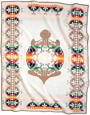 The Turtle blanket recognizes the Iroquois Confederacy: the Oneida, Seneca, Mohawk, Cayuga, Onondaga and Tuscarora Nations. The Turtle design is a representation of the Iroquois Creation legend. ~Pendleton Legendary Collection