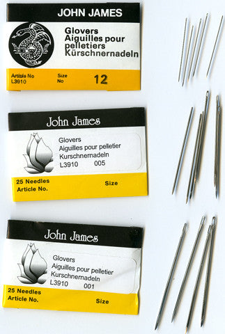 The Glover needles are a heavy needle with sharp triangular points that easily pierce leather. They are a specifically designed for sewing hides and work very well for commercial hides and brain-tanned hides. We carry size 1 - 12, with size 1 being the largest and size 12 being the smallest. Anyone sewing buckskin or suede should have several of these on hand.